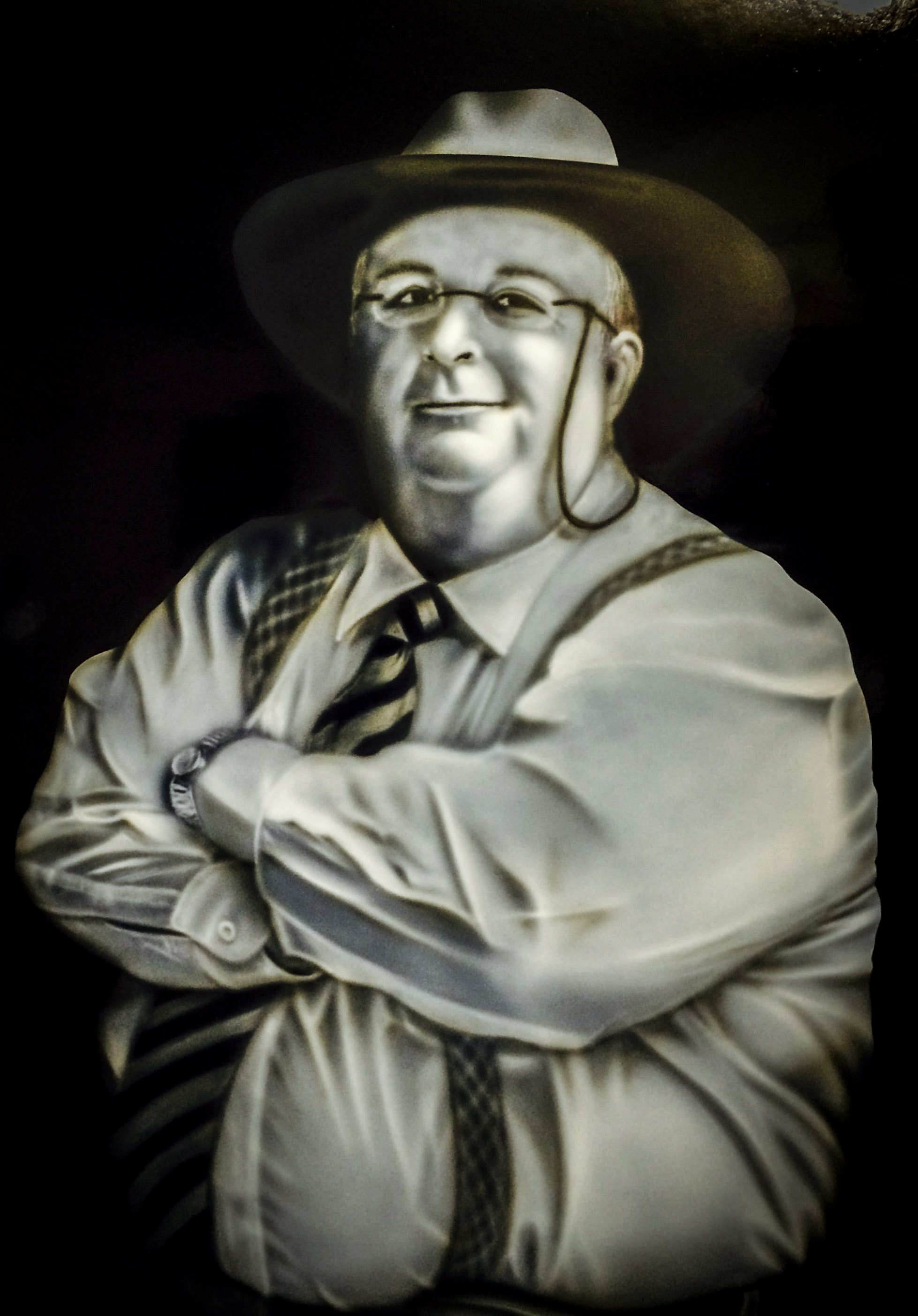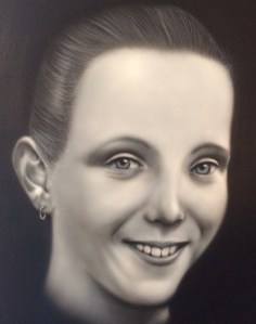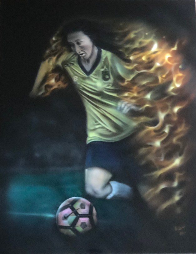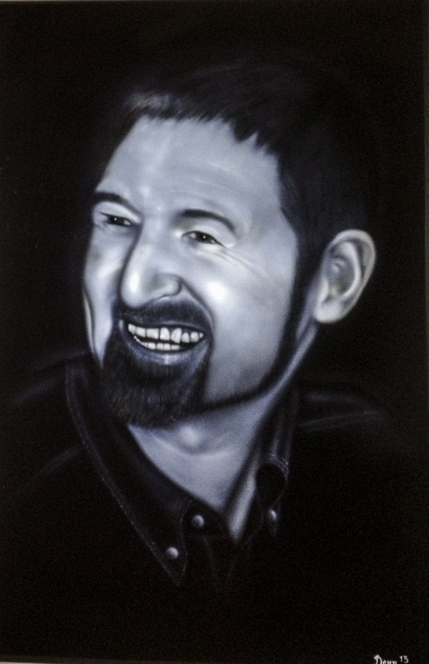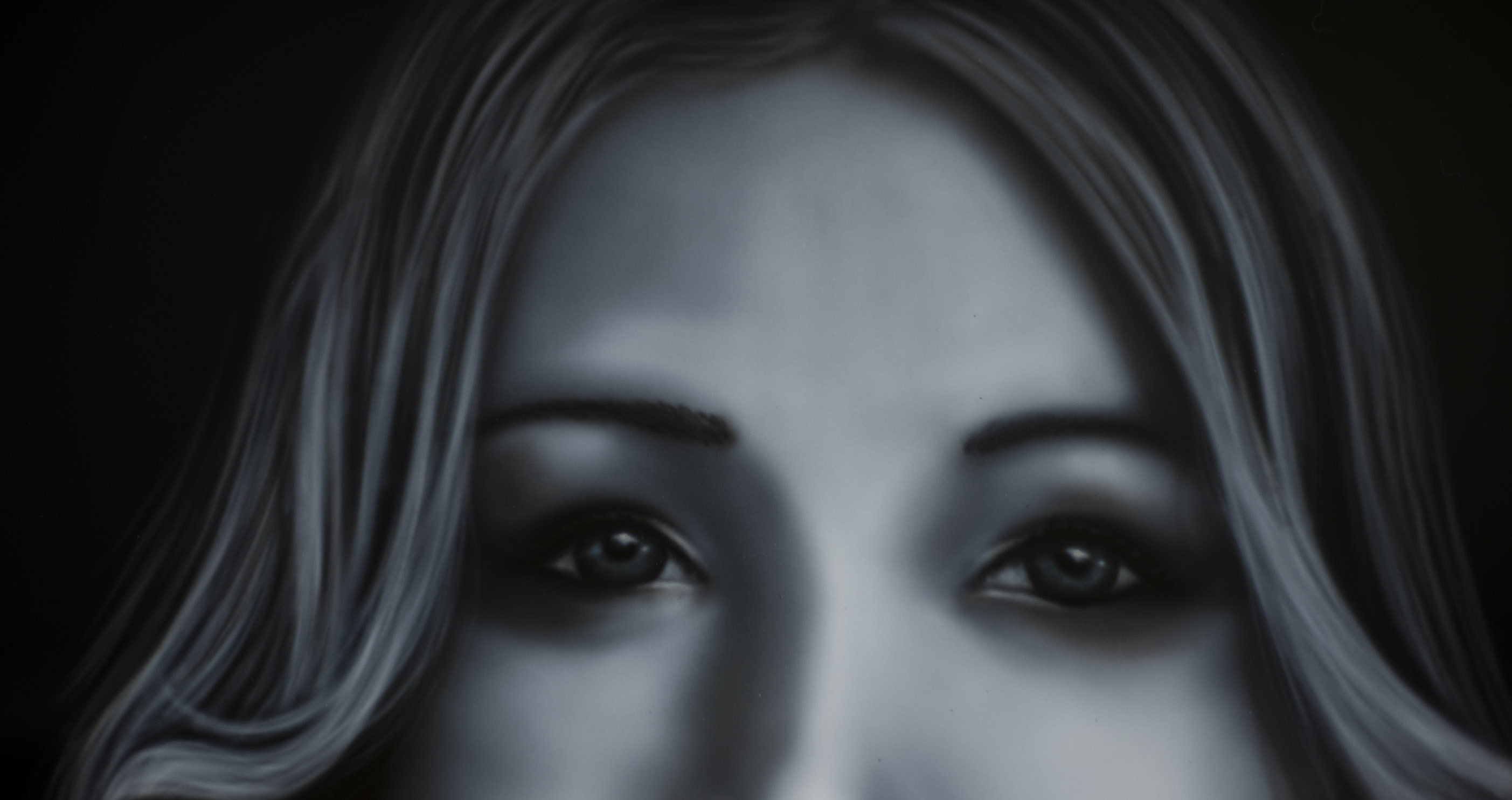 This painting was a commissioned piece. I love monochromatic airbrushing, it’s amazing how much depth and detail you can get with one colour. This portrait took me about 10 hours to complete.